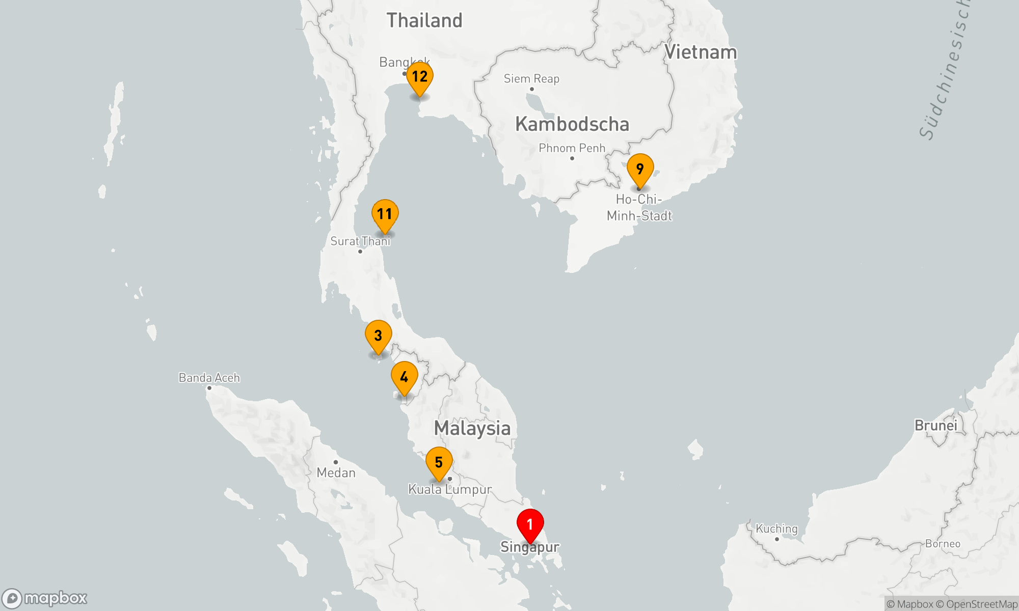 Pulsierende Großstädte, deren Rhythmus ein völlig anderer ist als der europäischer Städte. Verlockende Straßenmärkte und duftende Garküchen auf den Gehwegen. Goldene, reichverzierte Tempelanlagen neben moderner Architektur. Exotische Inselwelten, palmengesäumte Traumstrände und tropisch-bunte Unterwasserwelten. Regenwald und Bananenplantagen. Weltbekannte Bauwerke und Sehenswürdigkeiten.
