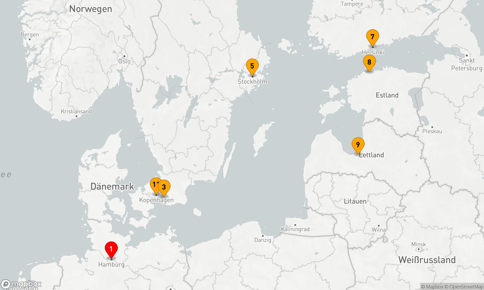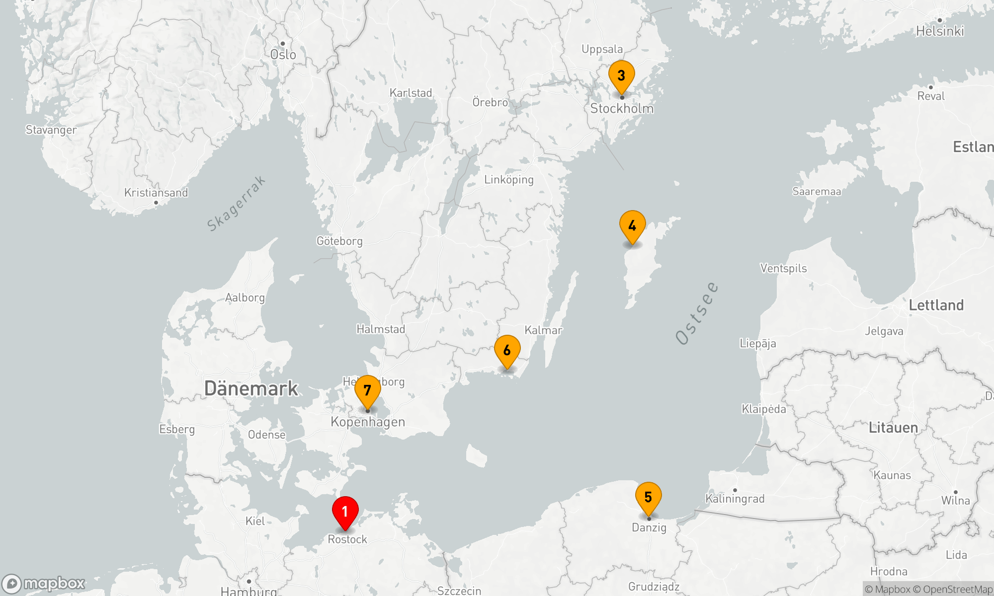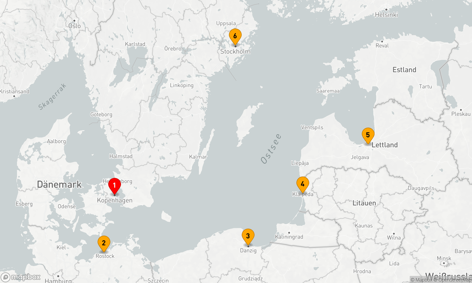 Die Ostsee ist ein recht kleines Meer, das mit umso größerer landschaftlicher und kultureller Vielfalt begeistert. Neun Länder bilden die Küstenlinie: neben Deutschland sind es die skandinavischen Länder Dänemark, Schweden und Finnland, die baltischen Länder Polen, Litauen Lettland und Estland sowie Russland. Und so bietet eine Ostsee-Kreuzfahrt die Möglichkeit, selbst mit wenigen Urlaubstagen eine vielseitige Kurzreise zu unternehmen. Oder auf einer längeren Kreuzfahrt entlang der Ostseeküste in ganz unterschiedliche Kulturen einzutauchen, baltisches und skandinavisches Flair zu erleben, vielfältige Landschaften zu genießen und wunderschöne Städte zu besuchen. Der Reisebeginn in den Hafenstädten Warnemünde, Kiel oder Hamburg ermöglicht eine bequeme und schnelle Anreise. Kopenhagen, die Insel Bornholm, Stockholm, Oslo, Helsinki, Tallinn, Riga, Klaipéda und Danzig sind mögliche Stopps Deiner Ostsee-Kreuzfahrt. Wir stellen Dir die einzelnen Städte und Ausflugsmöglichkeiten an Land hier kurz vor.